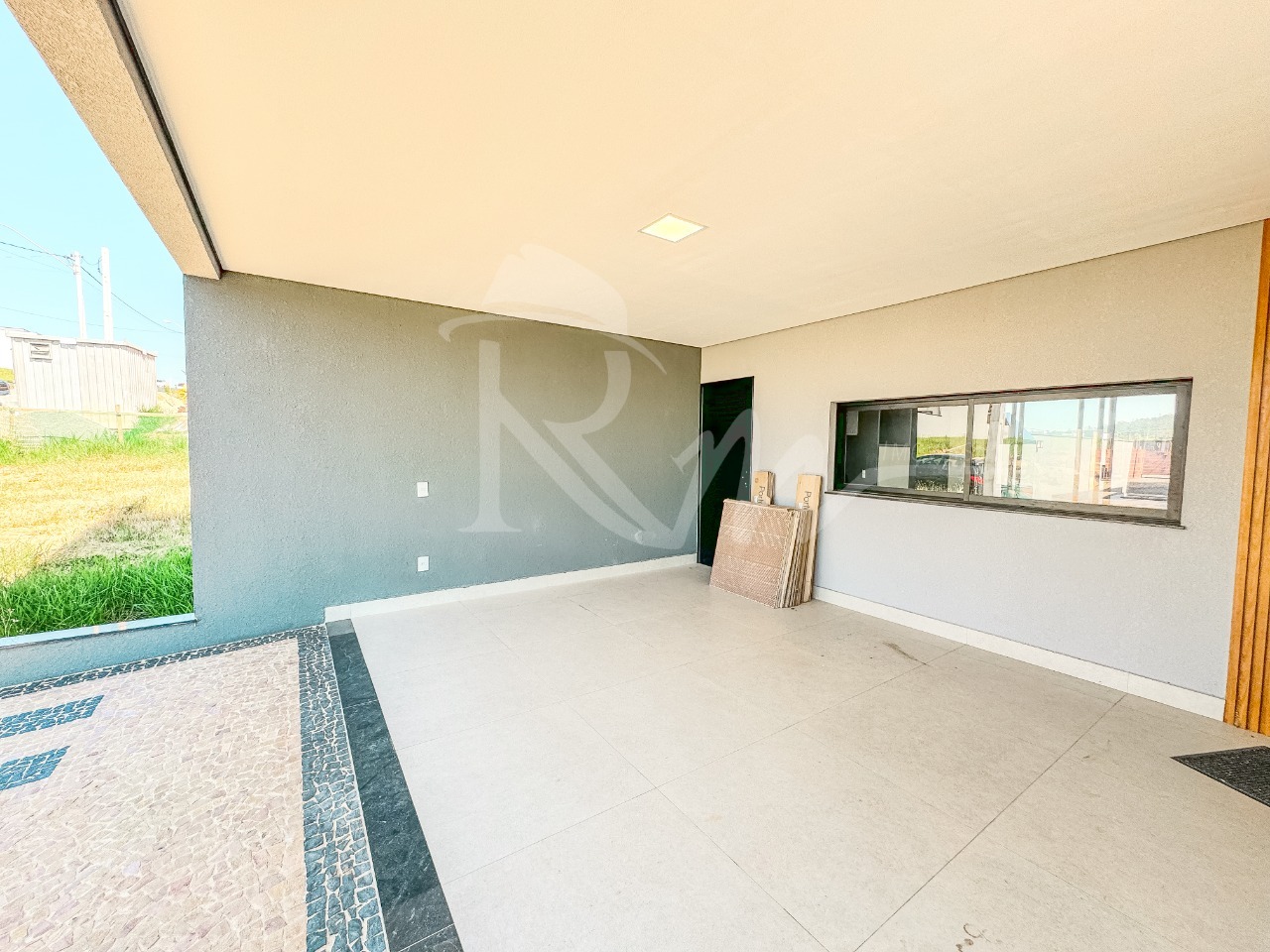 - Entrada principal com porta ripada e fechadura eletrônica