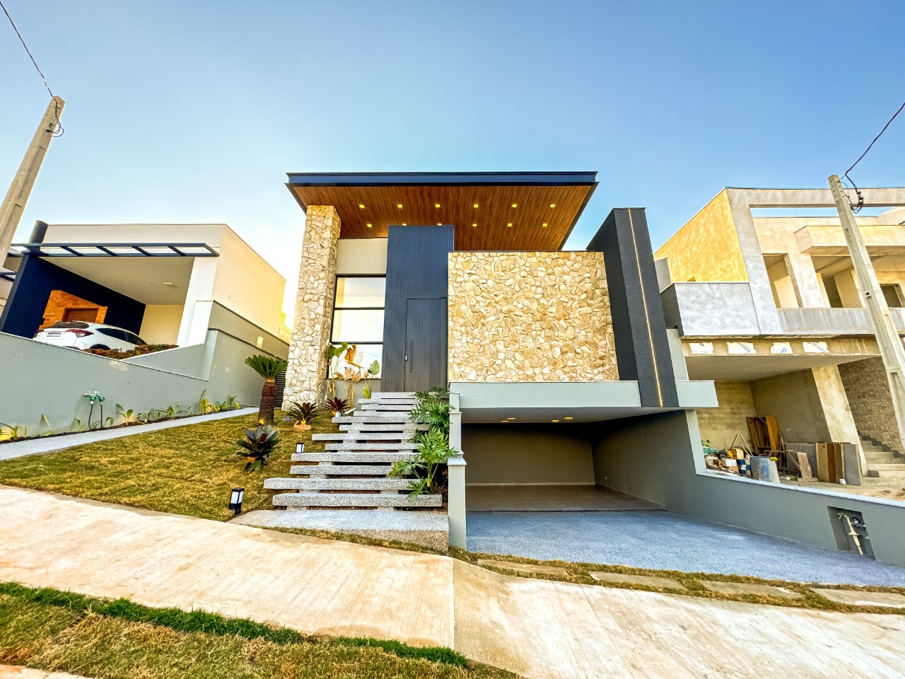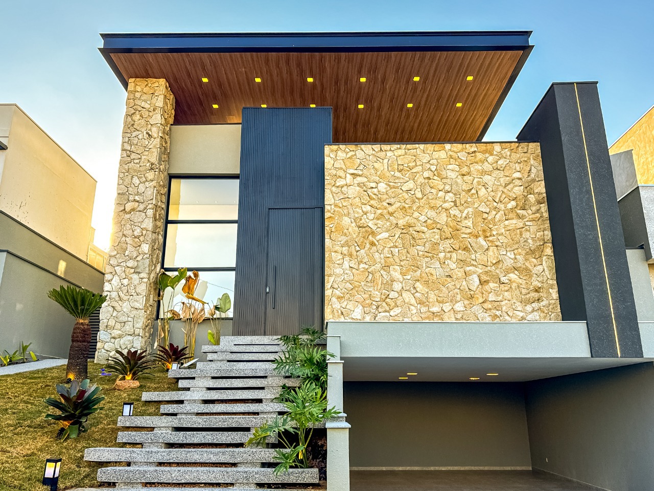 - Paisagismo na fachada e nas laterais com irrigação automatizado