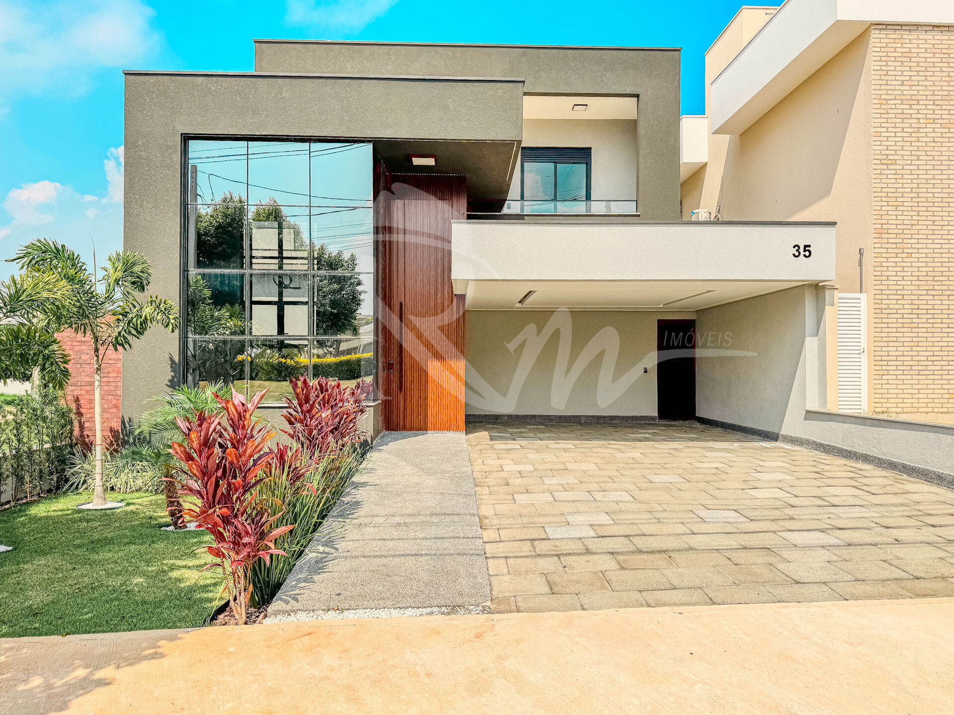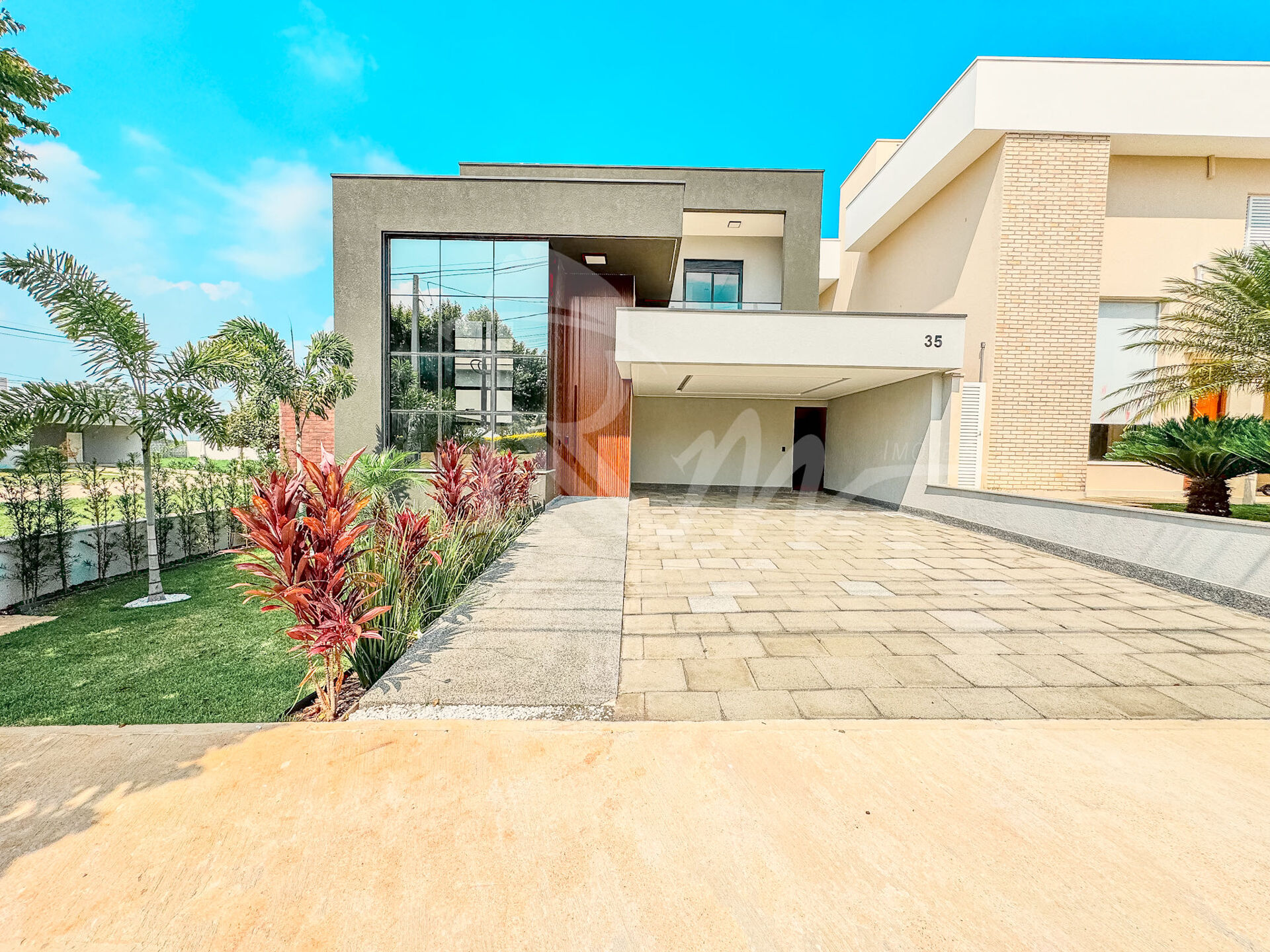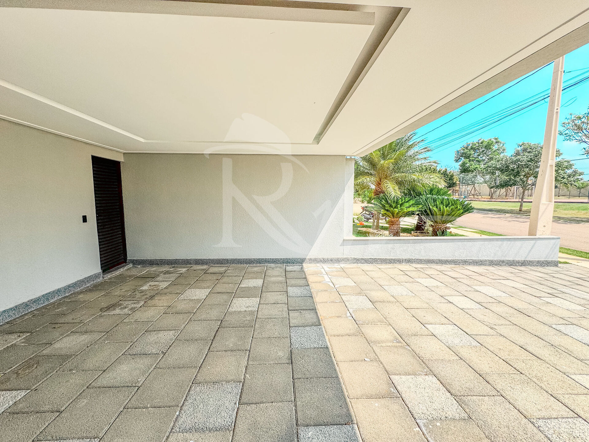 Hall de entrada coberto com pé direito alto; Sala de Estar com pé direito alto; Living / Sala de Jantar; Cozinha; Espaço Gourmet; Lavabo; Banheiro externo piscina; Lavanderia; Depósito; Garagem para 4 carros sendo 2 cobertos e dois descobertos.