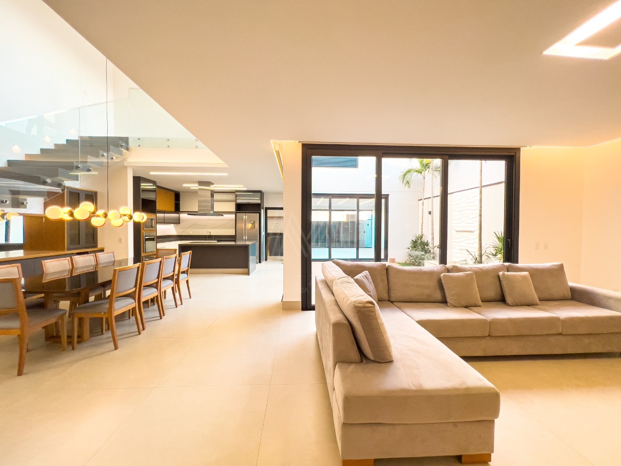 - Suíte master com banheira Sala de estar, jantar e cozinha integradas